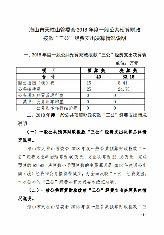 潛山市天柱山管委會2018年度一般公共預算財政撥款“三公”經(jīng)費支出決算情況說明