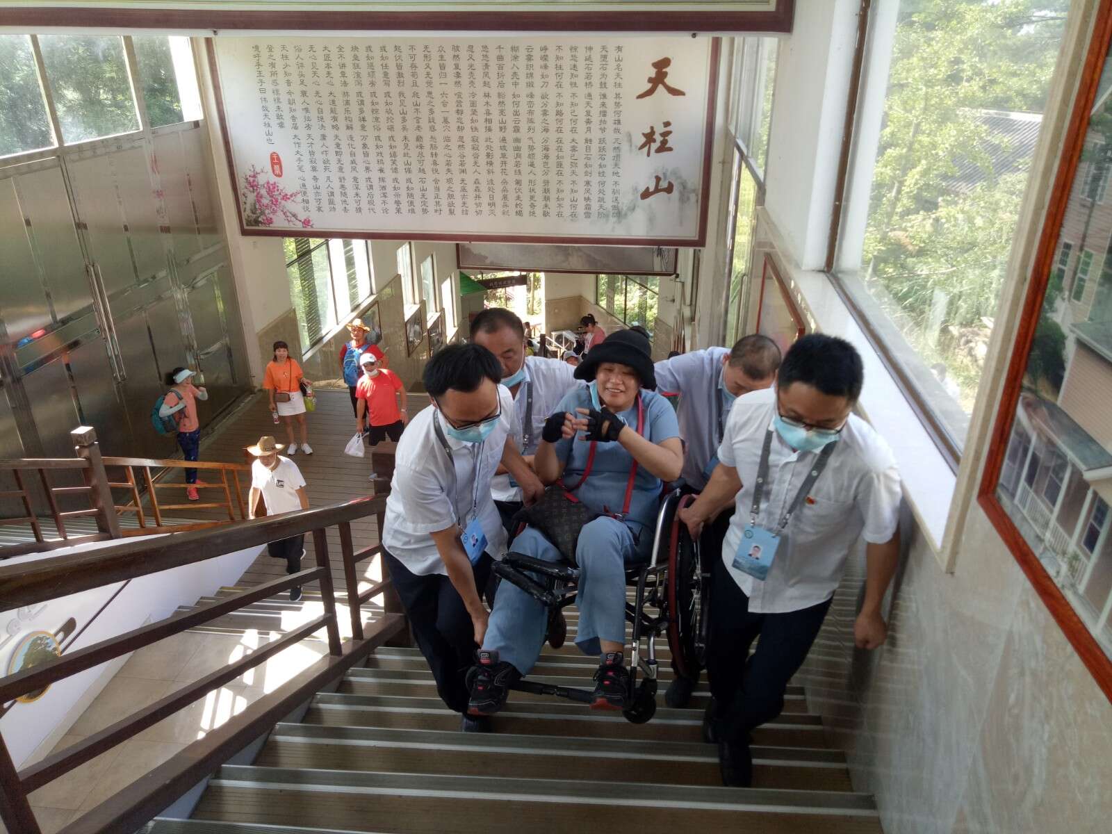 “天柱山很美,景區(qū)服務(wù)很周到,為索道工作人員的貼心服務(wù)點(diǎn)贊”。8月16日,天柱山風(fēng)景區(qū)迎來(lái)了一批特殊的游客,為了讓這批殘疾人士一睹天柱山的美麗風(fēng)景,大龍窩索道和執(zhí)法大隊(duì)一中隊(duì)及時(shí)抽調(diào)黨員骨干,組成10余人的愛(ài)心志愿者分隊(duì),全程陪同一對(duì)一的為他們貼心服務(wù),志愿者們采取了背、抱、扶的辦法,為殘疾人士實(shí)現(xiàn)了無(wú)障礙通行,檢票口開(kāi)通了綠色檢票通道,站臺(tái)服務(wù)細(xì)致入微,使得這批特殊的游客感受到了來(lái)自景區(qū)的溫暖,圓了他們的登山夢(mèng),大龍窩索道正在用實(shí)際行動(dòng)踐行著“大愛(ài)天柱,情系天下”的服務(wù)宗旨。(文圖/李平)