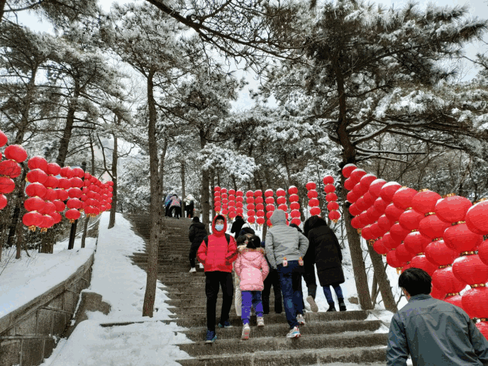 ? ? 辭舊迎新,正月初一,不少人選擇走出家門,去景區(qū)游玩行大運(yùn)。天柱山景區(qū)為了給游客提供便利安全的服務(wù),特地在除夕前加班加點清除路上積雪。天柱山上的大紅燈籠,為一年一度的新春佳節(jié),增添了濃郁的歡樂氣氛。截止下午四時,天柱山游客量1.08萬人次。