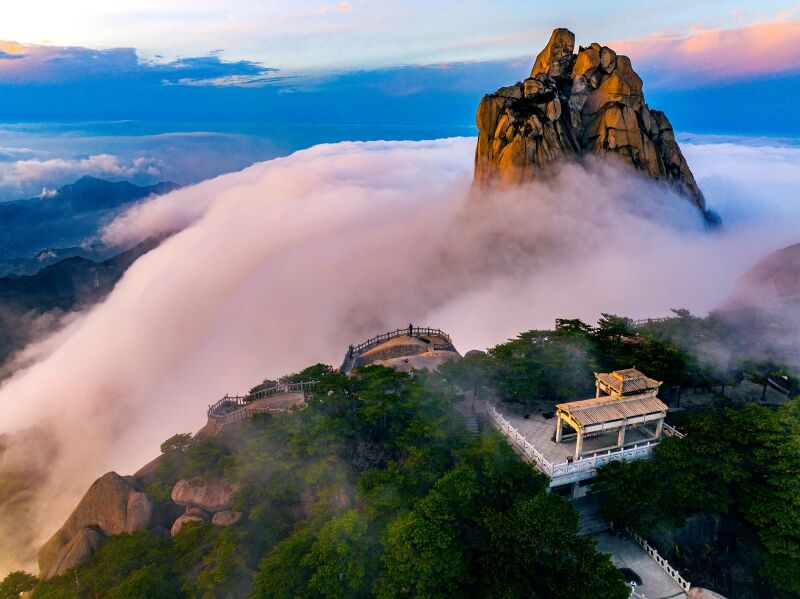 天柱山主峰天柱峰,又名筍子尖,海拔1489.8米,為江淮地區(qū)最高山峰,因其如“擎天一柱”深居山脊之上,孤峰突起、石骨嶙峋、直上云霄,故得名天柱山。這里自然風光雄奇與靈秀并存,兼具黃山之奇、廬山之秀,人文景觀博大精深,與道教、佛教、歷代名人都有深厚淵源。