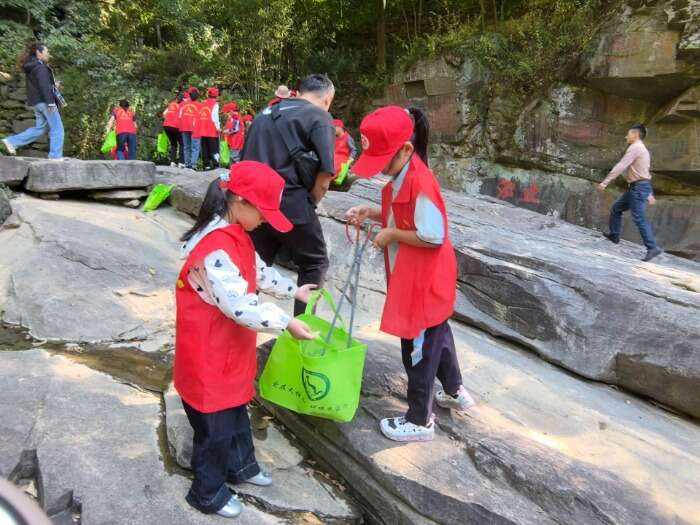 山谷流泉景區(qū)里,景區(qū)志愿者為招募而來的小學(xué)生志愿者穿上紅色小馬甲,戴上小紅帽,送上國旗貼紙和小國旗,并帶上火鉗、方便袋等小工具在景區(qū)拾撿垃圾,參與古箏學(xué)習(xí)、弈棋、朗誦古詩等豐富多彩的互動(dòng)志愿活動(dòng),一抹抹“中國紅”流動(dòng)在景區(qū)里,大家都感受到奉獻(xiàn)的快樂,一粒?!皭邸钡姆N子悄然播種在小志愿者的心田。與此同時(shí),志愿者們還在山谷流泉文化園、天柱山地質(zhì)公園博物館開展免費(fèi)講解、宣傳天柱山歷史文化、天柱山故事等服務(wù)。