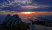 特色: 朗朗乾坤,綺霞紛祥;山清水秀,艷陽高照。當(dāng)清晨的第一抹陽光穿透薄薄的云霧,刺射晨初的水露散射在萬丈高空,山下仰望,那是山與光的相互依托,一映一景,盡態(tài)極妍,極顯天柱峰光。晨陽漸升,松云環(huán)腰,時輕時濃,滿山蒼翠若隱若現(xiàn),每至峰頂散陽透入,則如金環(huán)系腰,風(fēng)云變幻,盡展天柱奇祥。及至正午,撥云見日,南山當(dāng)戶轉(zhuǎn)分明。屹立天柱之巔,城中景盡收眼底。更甚則是六月清和雨...